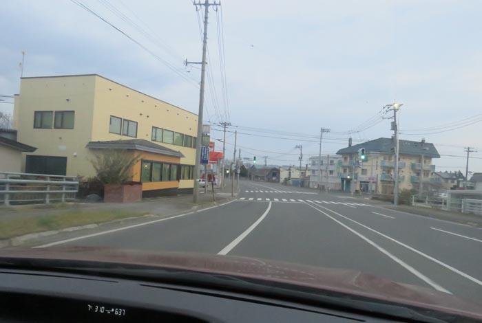 南岸通り、野付牛自動車学校前、前方はとん田通りの交差点