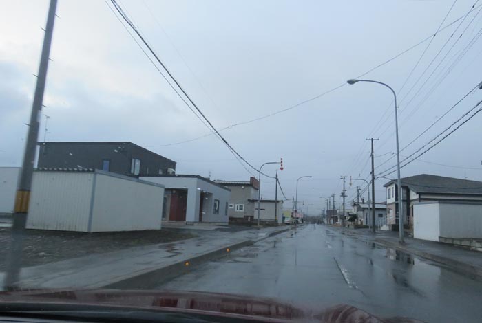 産岸通りから左折して西5号線のバス停前から北光通り交差点方向