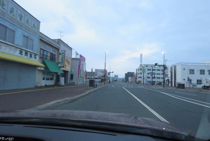 末広町の南岸通り、西4号線バス停前から野付牛自動車学校方向