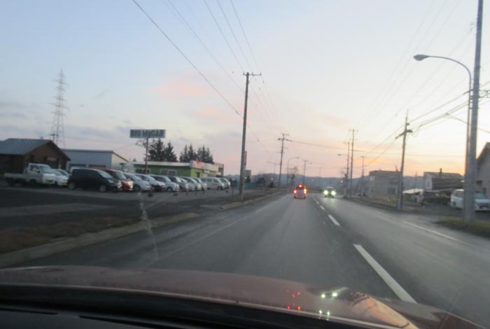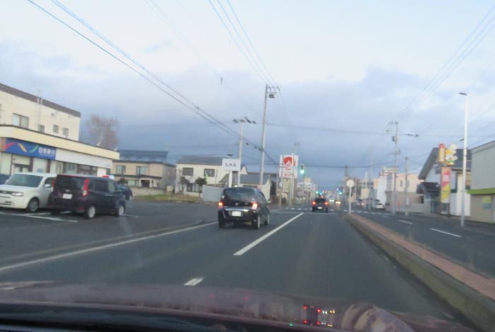 末広町の南岸通り、西4号線バス停前から野付牛自動車学校方向