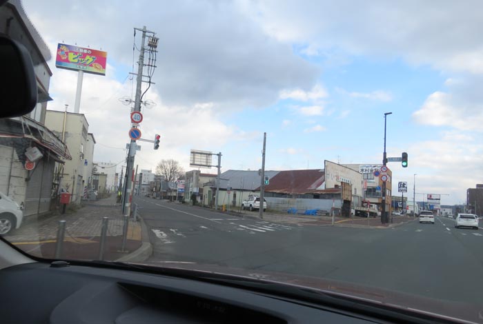 南岸通り、とん田通りの交差点から右は北光神社方向
