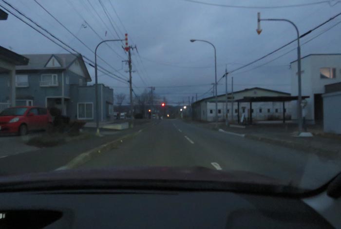 末広町の南岸通り、西4号線バス停前から野付牛自動車学校方向