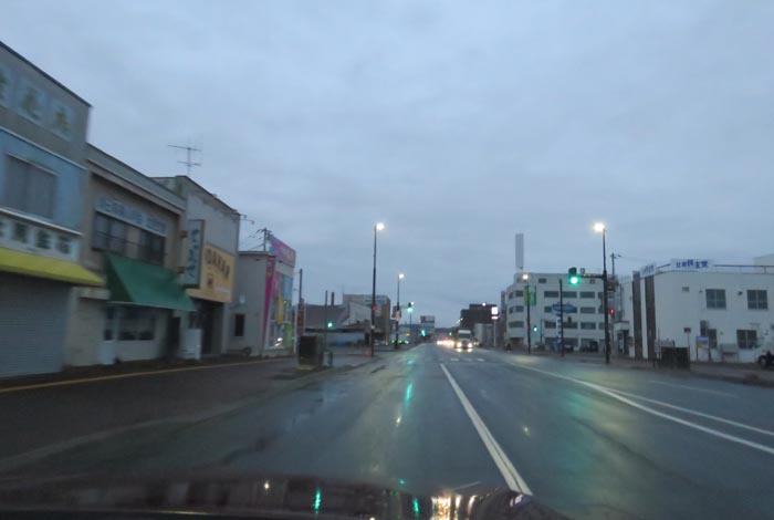 末広町の南岸通り、西4号線バス停前から野付牛自動車学校方向