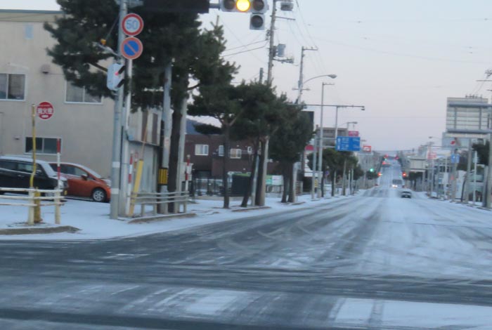 午前6時40分、西5号線、前方は南岸通りの交差点