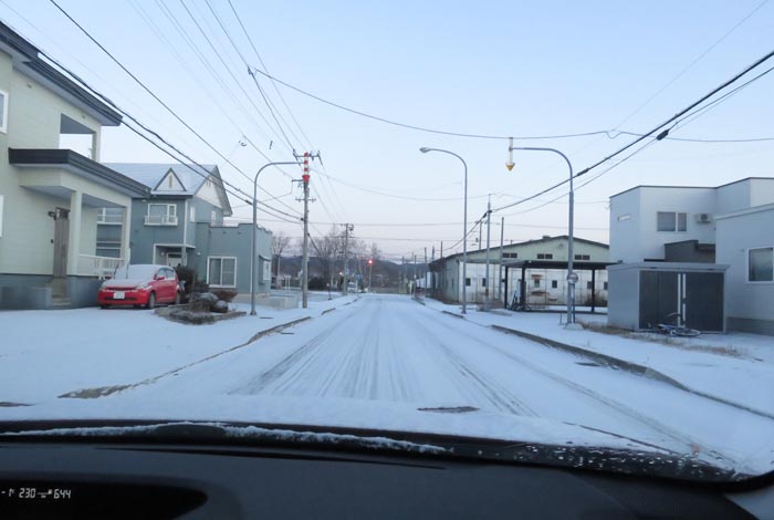 末広町の南岸通り、西4号線バス停前から野付牛自動車学校方向