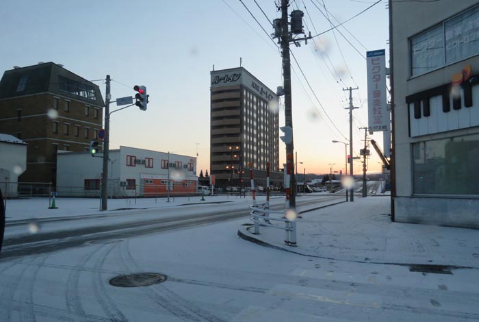 午前6時50分、国道39号、北1条通り交差点