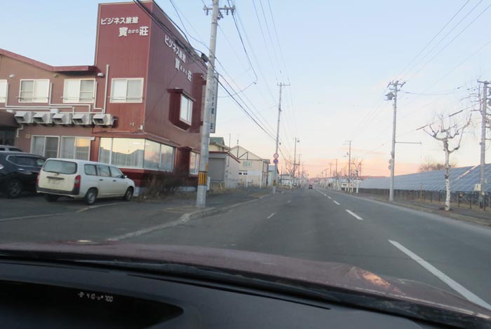 午前6時50分、南岸通り、野付牛自動車学校前から無加川町方向