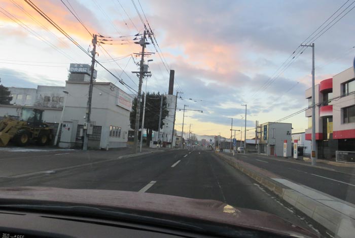 午前6時50分、西3号線とん田通りの北見中央病院横から無加川橋方向
