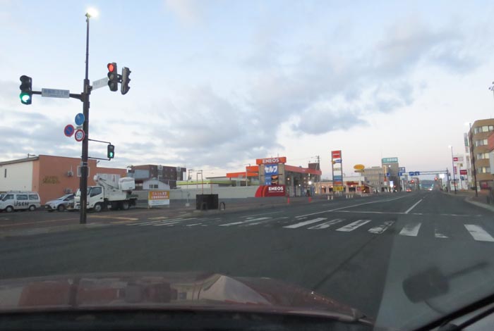 午前6時50分、北4条通りの国道39号交差点を右折で緑園通り方向