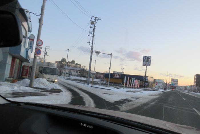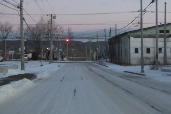 末広町の南岸通り、西4号線バス停前から野付牛自動車学校方向