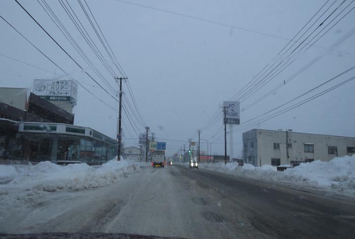 午前7時00分、北4条通りの国道39号交差点を右折で緑園通り方向