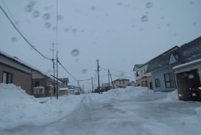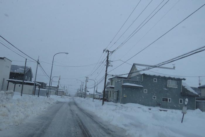 産岸通りから左折して西5号線のバス停前から北光通り交差点方向