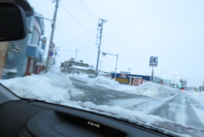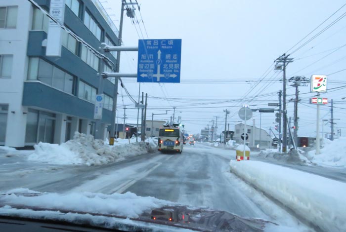 末広町の南岸通り、西4号線バス停前から野付牛自動車学校方向