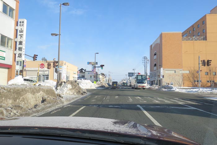 国道39号、大通り東4丁目交差点から左の仁頃通り側