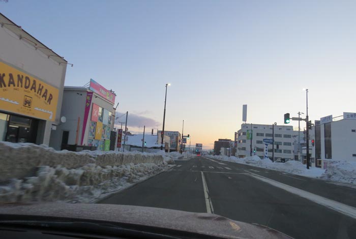 南岸通り、とん田通りの交差点から右は北光神社方向