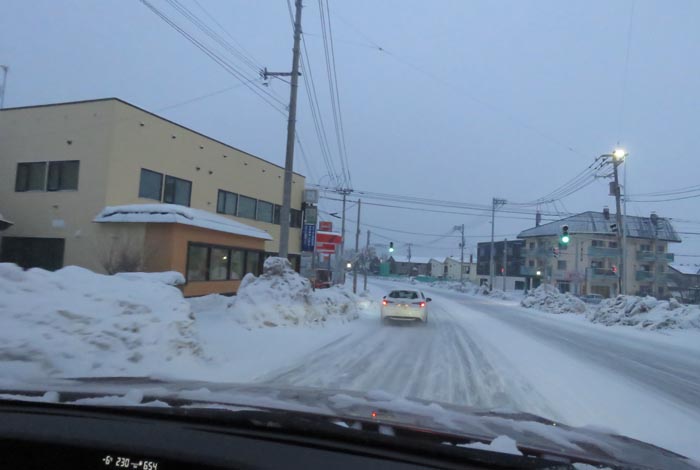 末広町の南岸通り、西4号線バス停前から野付牛自動車学校方向