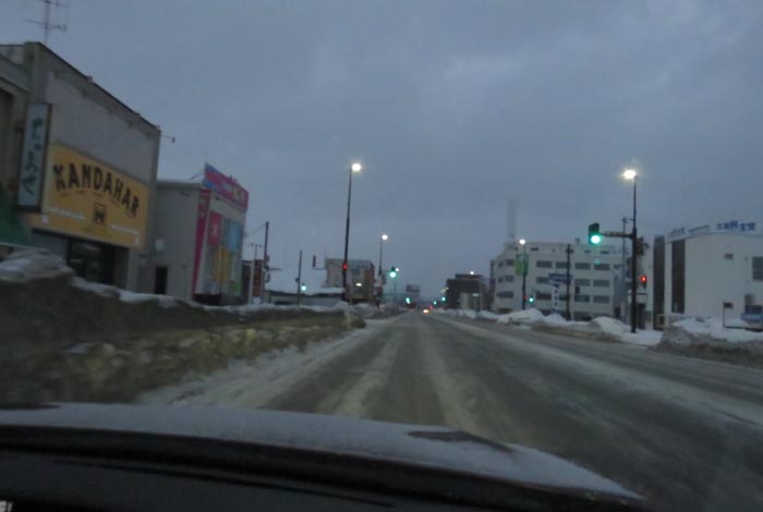 末広町の南岸通り、西4号線バス停前から野付牛自動車学校方向
