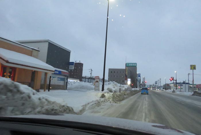午前7時00分、北4条通りの国道39号交差点を右折で緑園通り方向