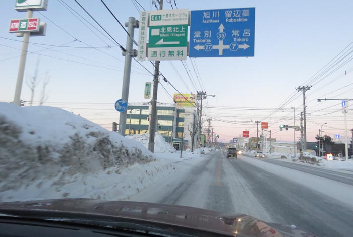 国道39号、北見トヨペット前からとん田通り交差点方向