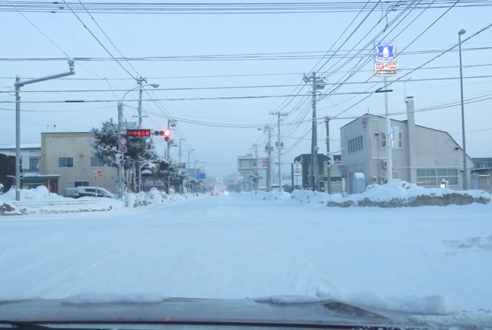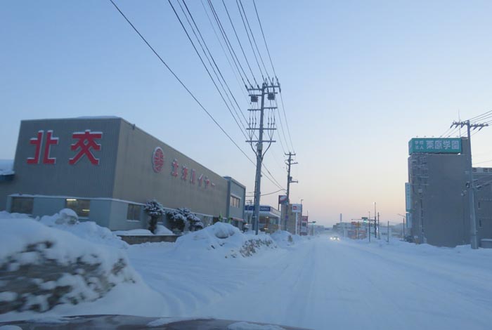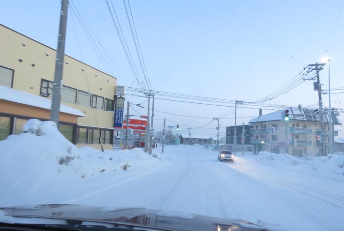 末広町の南岸通り、西4号線バス停前から野付牛自動車学校方向