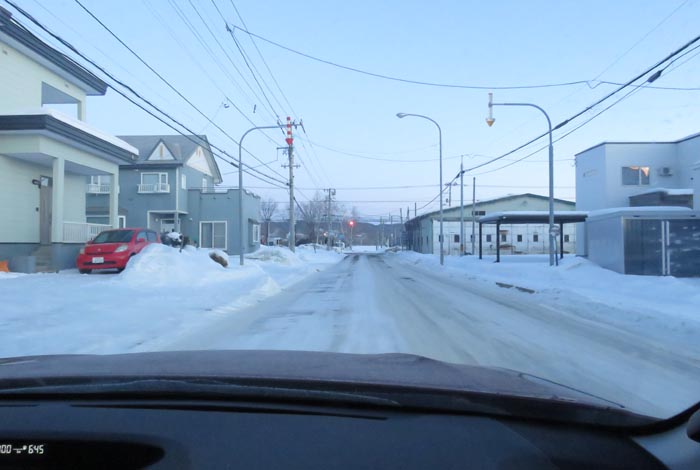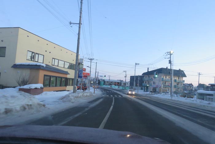 末広町の南岸通り、西4号線バス停前から野付牛自動車学校方向