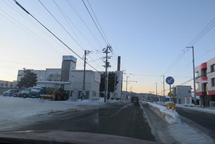 午前6時50分、西3号線とん田通りの北見中央病院横から無加川橋方向