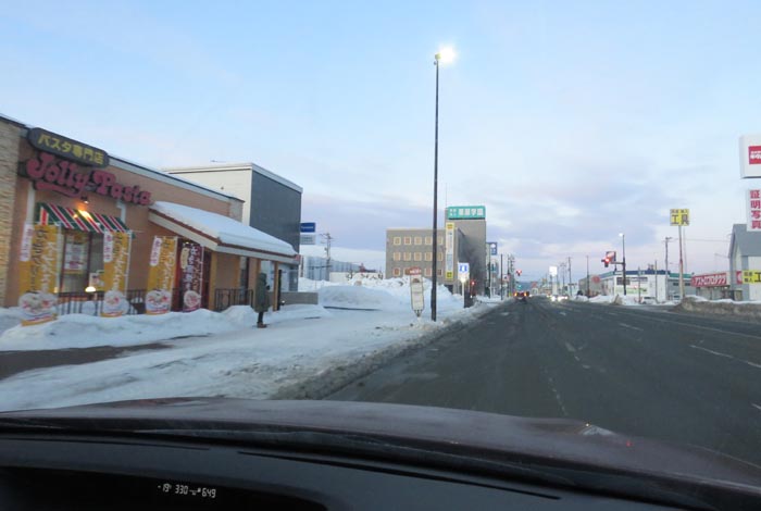 午前6時50分、北4条通りの国道39号交差点を右折で緑園通り方向