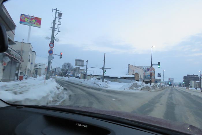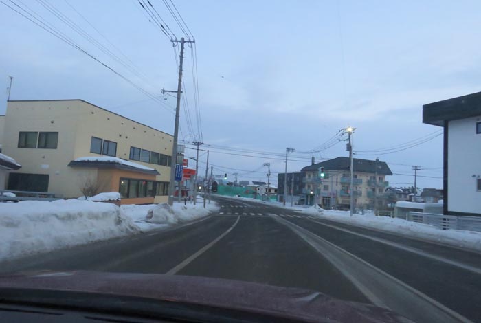末広町の南岸通り、西4号線バス停前から野付牛自動車学校方向