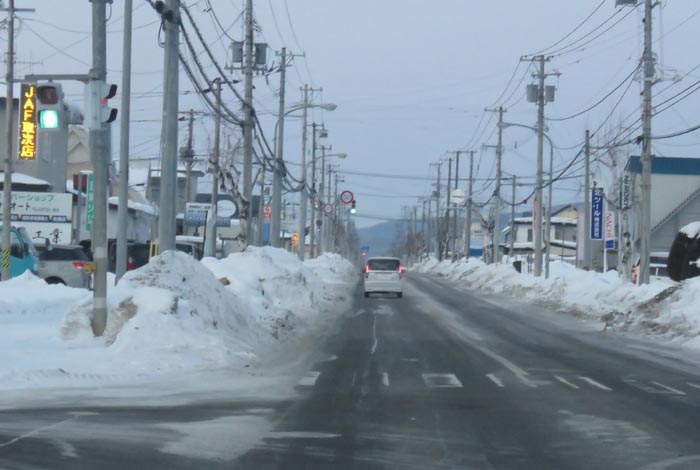 午前6時40分、南岸通り、野付牛自動車学校前から無加川町方向