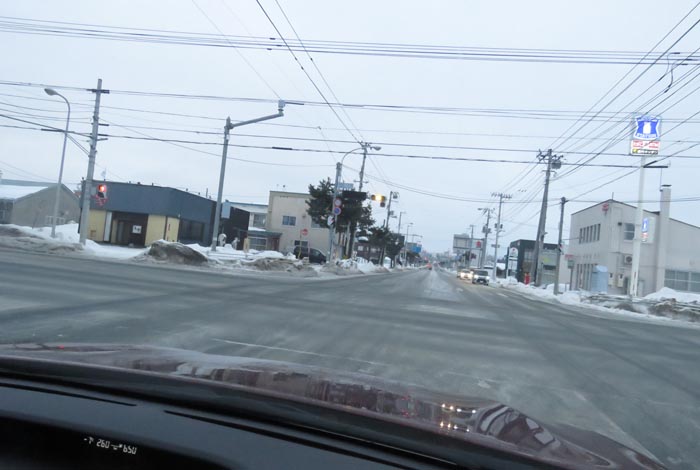 末広町の南岸通り、西4号線バス停前から野付牛自動車学校方向