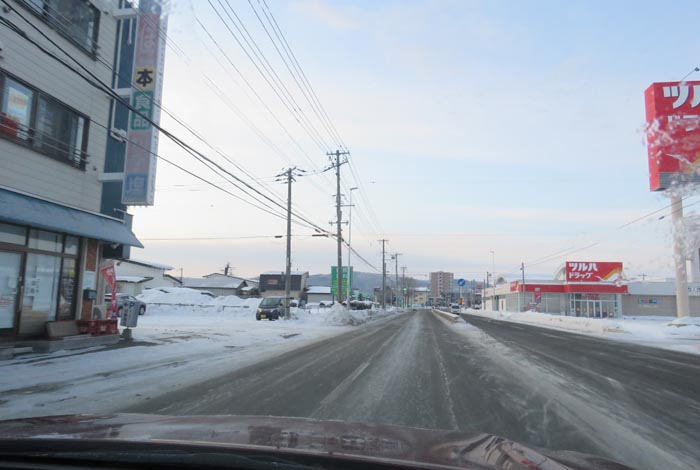 午前6時50分、西3号線とん田通りの北見中央病院横から無加川橋方向