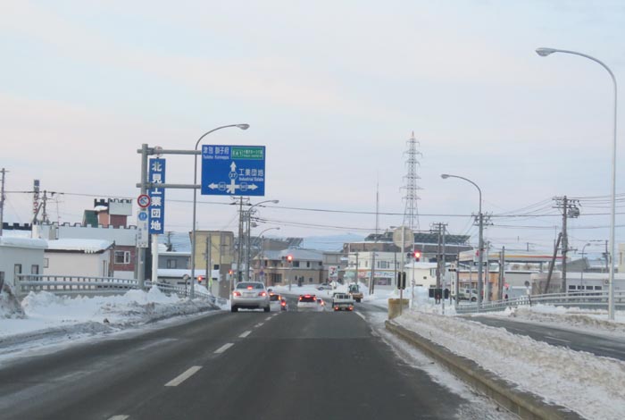 とん田通り、北見中央病院から南大通り交差点方向