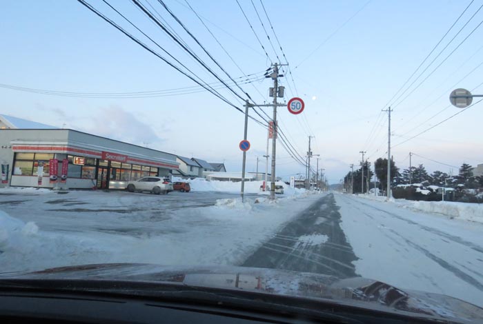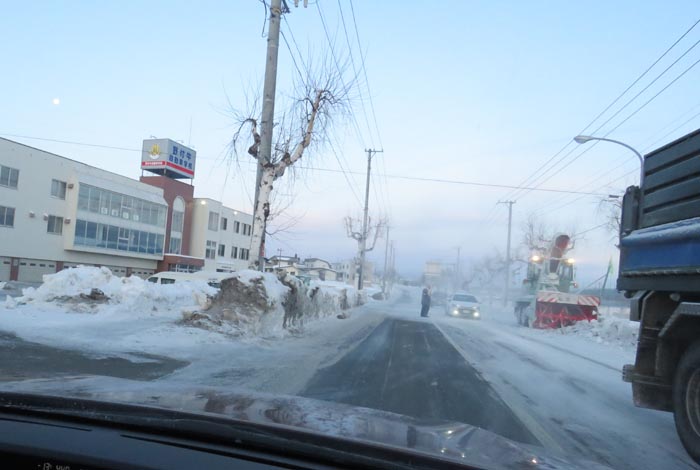 午前6時50分、南岸通り、野付牛自動車学校前から無加川町方向