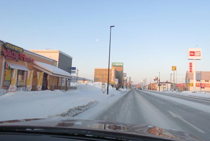 午前6時50分、北4条通りの国道39号交差点を右折で緑園通り方向