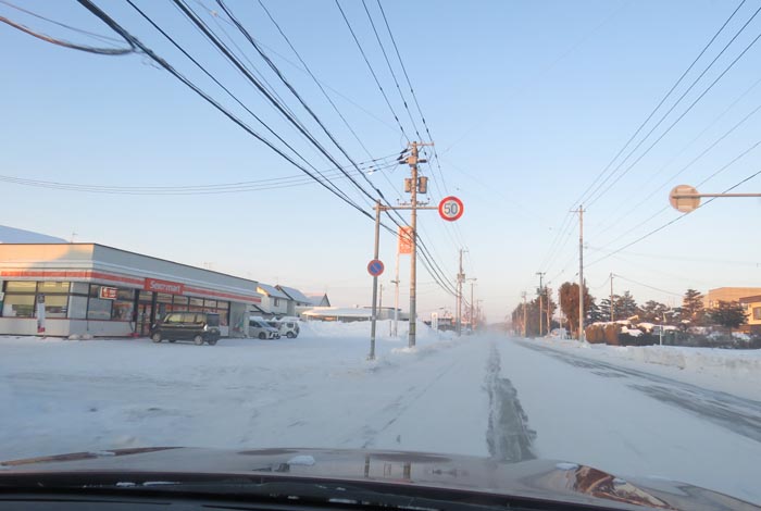 午前6時50分、南岸通り、野付牛自動車学校前から無加川町方向