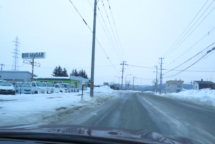 末広町の南岸通り、西4号線バス停前から野付牛自動車学校方向