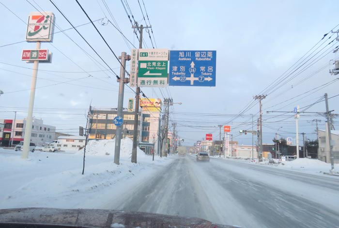 国道39号、北見トヨペット前からとん田通り交差点方向