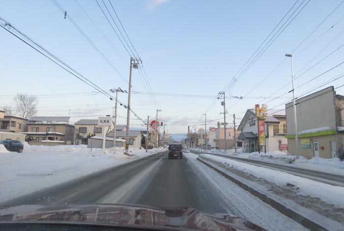 末広町の南岸通り、西4号線バス停前から野付牛自動車学校方向
