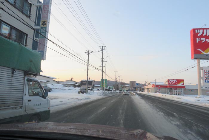 午前6時40分、西3号線とん田通りの北見中央病院横から無加川橋方向