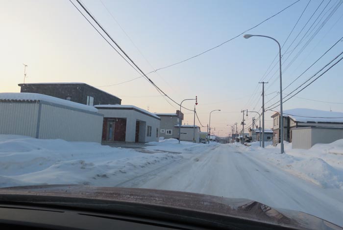 産岸通りから左折して西5号線のバス停前から北光通り交差点方向