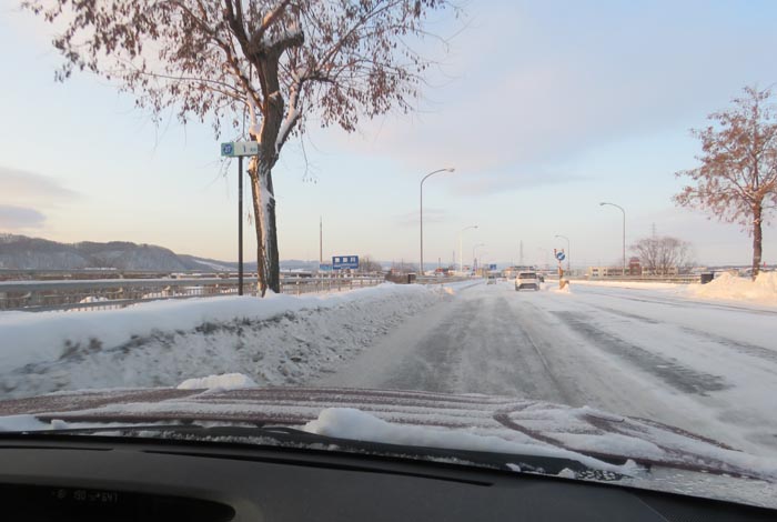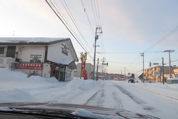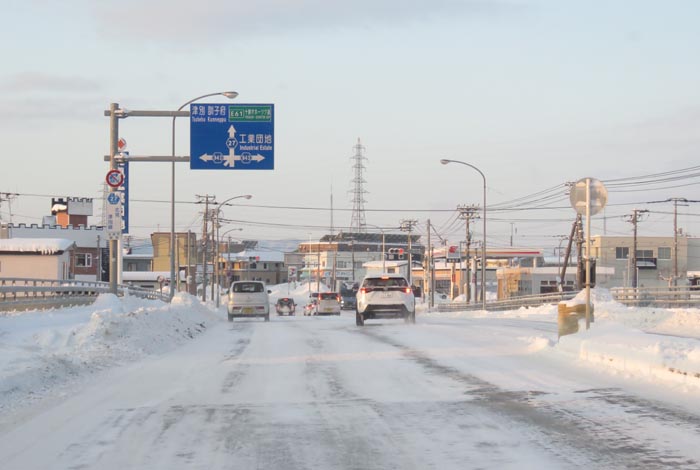 午前6時30分、西3号線とん田通りの北見中央病院横から無加川橋方向