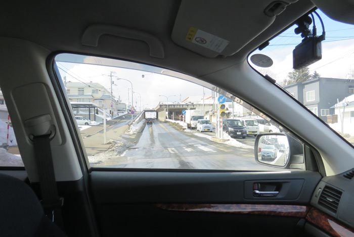 国道39号、北見神社の鳥居前から東9丁目歩道橋方向