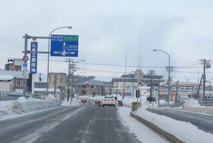 午前6時40分、西3号線とん田通りの北見中央病院横から無加川橋方向
