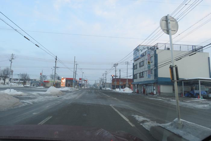 末広町の南岸通り、西4号線バス停前から野付牛自動車学校方向