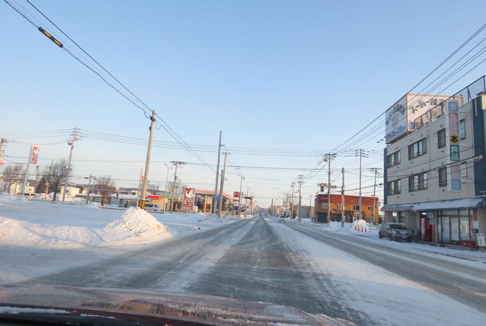 末広町の南岸通り、西4号線バス停前から野付牛自動車学校方向