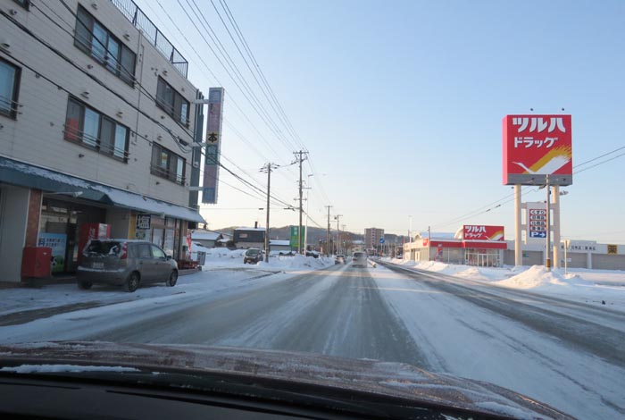 午前6時40分、西3号線とん田通りの北見中央病院横から無加川橋方向
