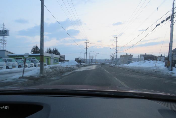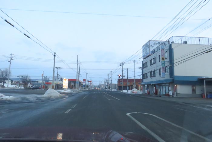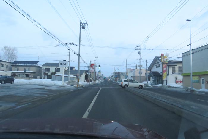 末広町の南岸通り、西4号線バス停前から野付牛自動車学校方向