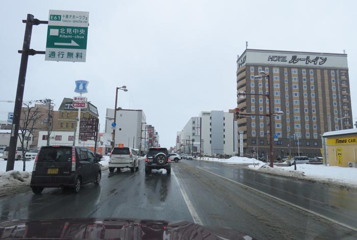 国道39号、五差路から北見駅方向