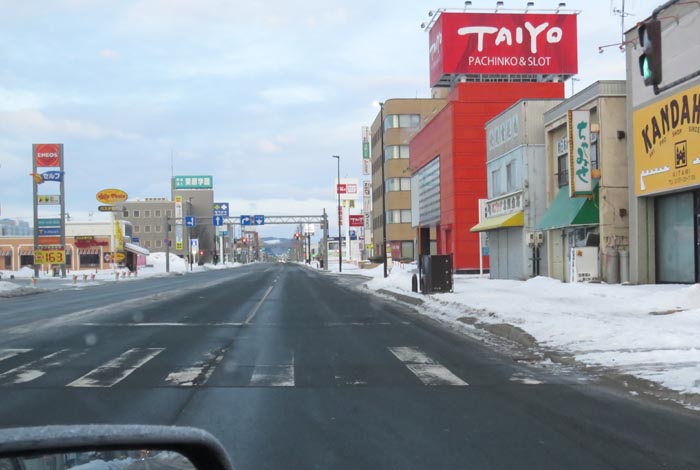 国道39号、北見トヨペット前からとん田通り交差点方向