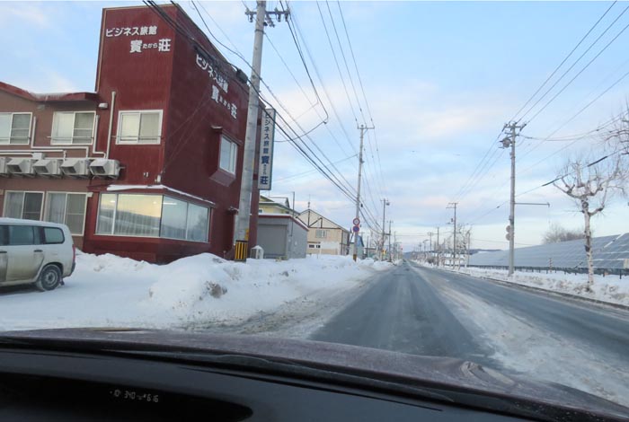 午前6時10分、南岸通り、野付牛自動車学校前から無加川町方向